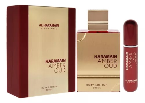 Amber Oud Ruby Edition de Al Haramain Perfumes es una fragancia de la familia olfativa para Hombres y Mujeres. Las Notas de Salida son azafrán y almendra amarga; las Notas de Corazón son cedro y jazmín egipcio; las Notas de Fondo son ámbar gris, notas amaderadas y almizcle.