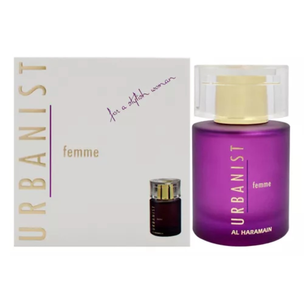 Urbanist Femme de Al Haramain Perfumes es una fragancia de la familia olfativa Chipre Floral para Mujeres. Las Notas de Salida son piña, manzana, limón (lima ácida) y naranja; las Notas de Corazón son jazmín y iris; las Notas de Fondo son almizcle, pachulí y ámbar.