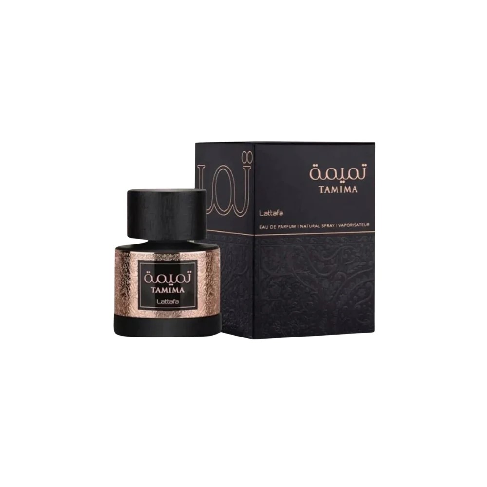 Tamima de Lattafa Perfumes es una fragancia de la familia olfativa Almizcle Amaderado Floral para Hombres y Mujeres. Esta fragrancia es nueva. Tamima se lanzó en 2024. Las Notas de Salida son kiwi, grosella roja, ruibarbo y pimienta rosa; las Notas de Corazón son sandía, ciclamen (violeta persa) y jazmín; las Notas de Fondo son almizcle, cedro, sándalo y notas amaderadas.